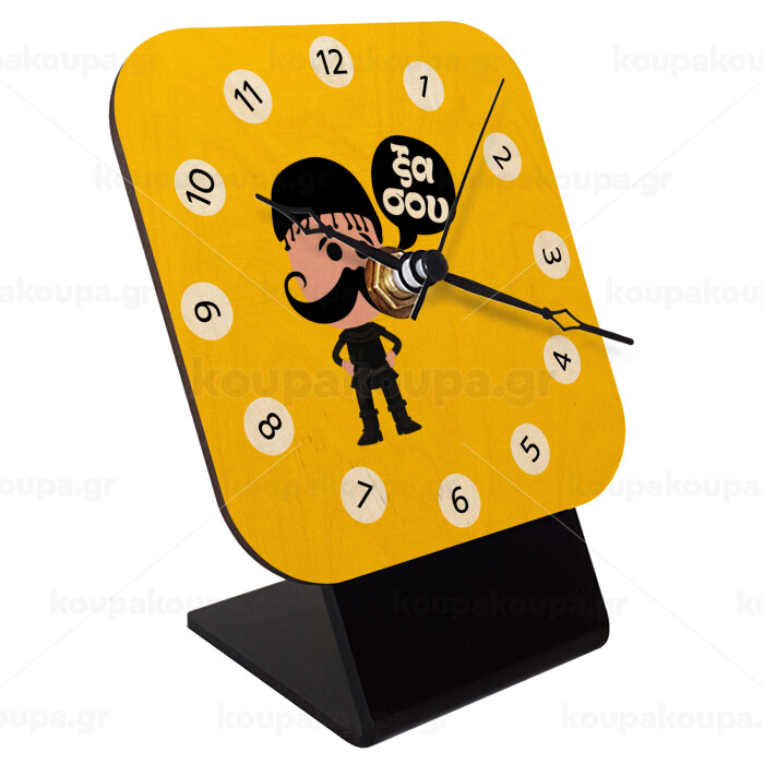 Κρητικός "Ξα σου", Quartz Table clock in natural wood (10cm)