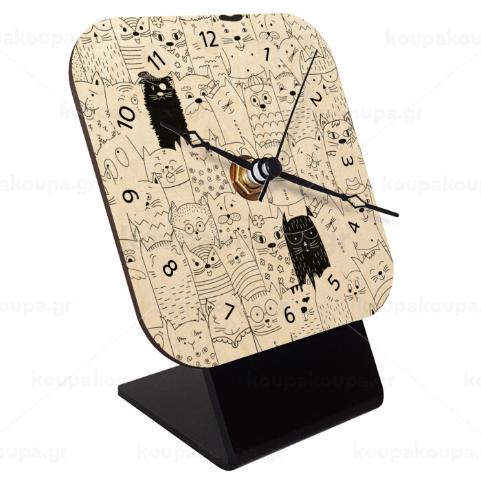 Γάτες γραμμικό σχέδιο, Quartz Table clock in natural wood (10cm)