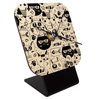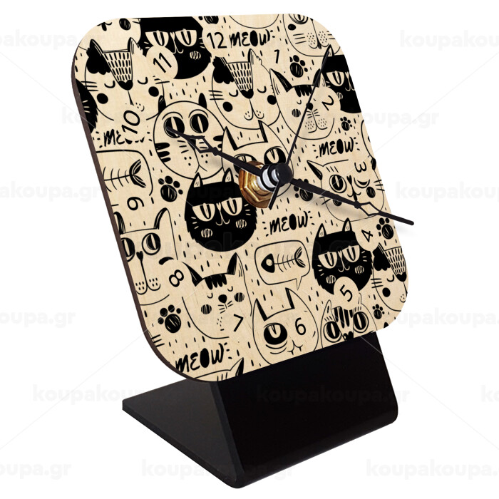 Γάτες, Quartz Table clock in natural wood (10cm)