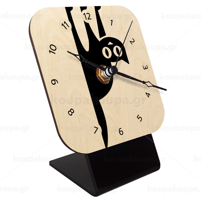 Cat upside down, Quartz Table clock in natural wood (10cm)