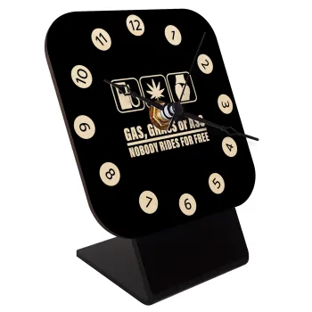 Gas, Grass or Ass, Quartz Table clock in natural wood (10cm)