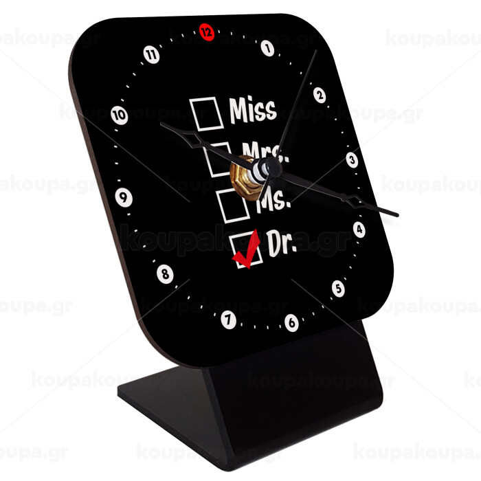 Miss, Mrs, Ms, DR, Quartz Wooden table clock with hands (10cm)