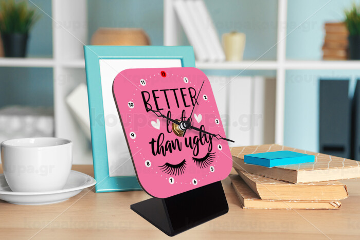 Better Late than ugly hearts, Quartz Wooden table clock with hands (10cm)