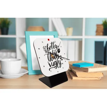 Better late than ugly, Quartz Wooden table clock with hands (10cm)