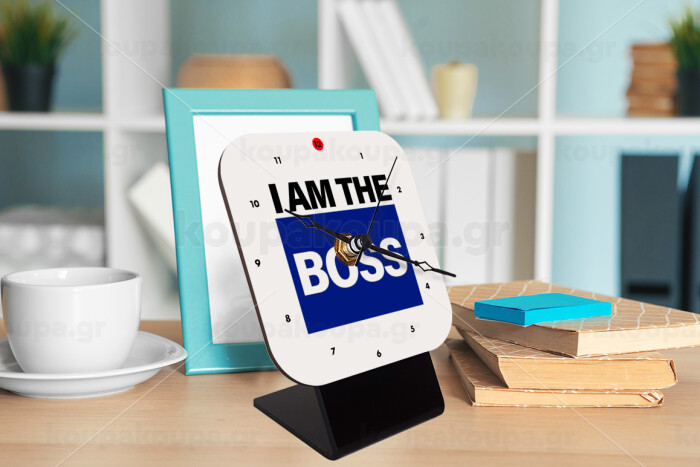 I am the Boss, Quartz Wooden table clock with hands (10cm)