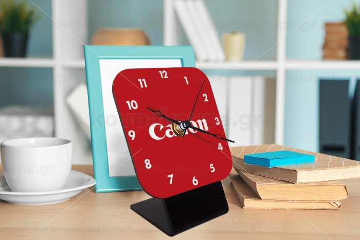 Quartz table clock made of wood. The set includes the clock and its base, the mechanism, and the installation instructions.