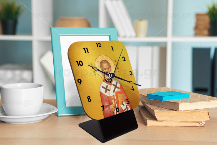 Saint Nicholas orthodox , Quartz Wooden table clock with hands (10cm)