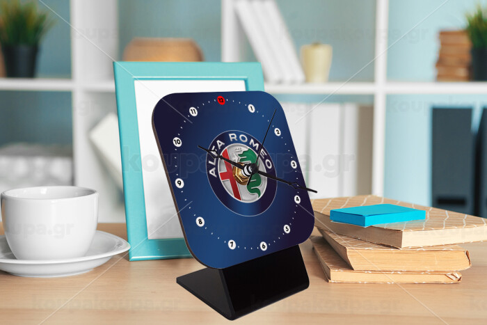 Alfa Romeo, Quartz Wooden table clock with hands (10cm)