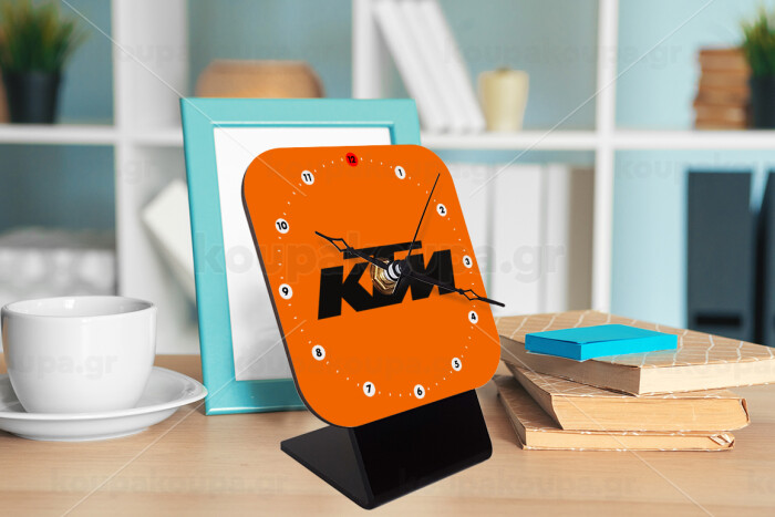 Quartz table clock made of wood. The set includes the clock and its base, the mechanism, and the installation instructions.