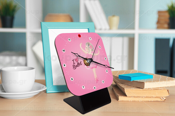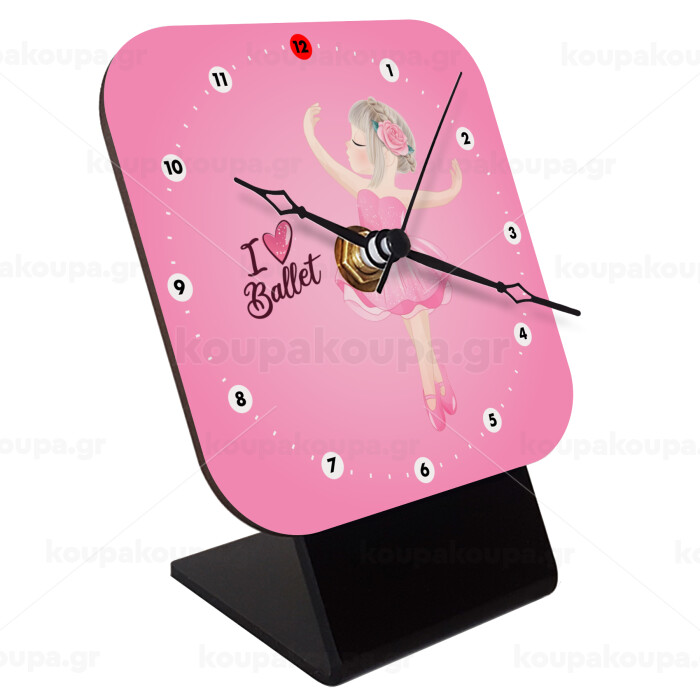 I Love Ballet, Quartz Wooden table clock with hands (10cm)