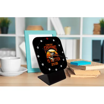A bad day FISHING is better than a good day at work, Quartz Wooden table clock with hands (10cm)