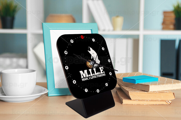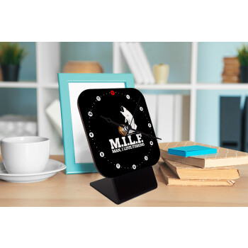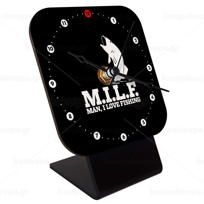 M.I.L.F. Mam i love fishing, Quartz Wooden table clock with hands (10cm)