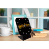 Quartz table clock made of wood. The set includes the clock and its base, the mechanism, and the installation instructions.