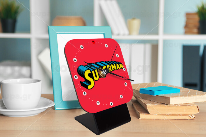Superman vintage, Quartz Wooden table clock with hands (10cm)