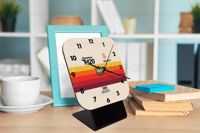 VHS sony dynamicron T-120, Quartz Wooden table clock with hands (10cm)
