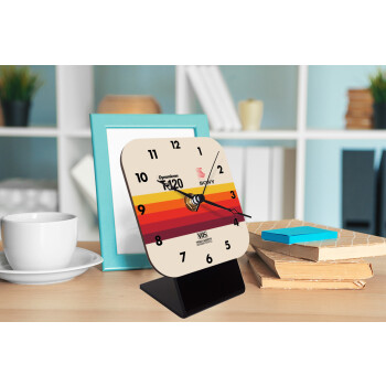Quartz table clock made of wood. The set includes the clock and its base, the mechanism, and the installation instructions.