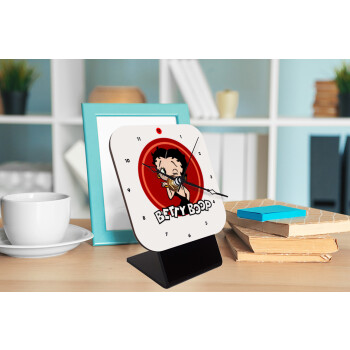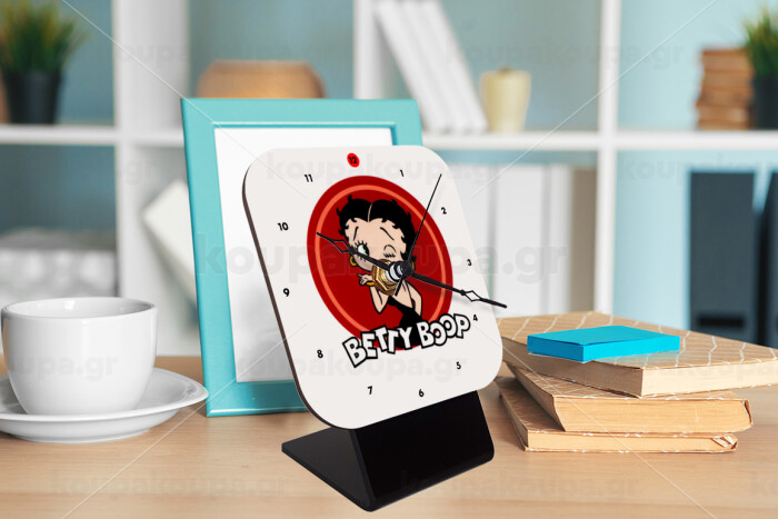 Betty Boop kiss, Quartz Wooden table clock with hands (10cm)