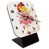 Quartz table clock made of wood. The set includes the clock and its base, the mechanism, and the installation instructions.