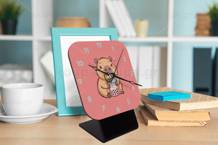 Capybara Bubble Tea, Quartz Wooden table clock with hands (10cm)