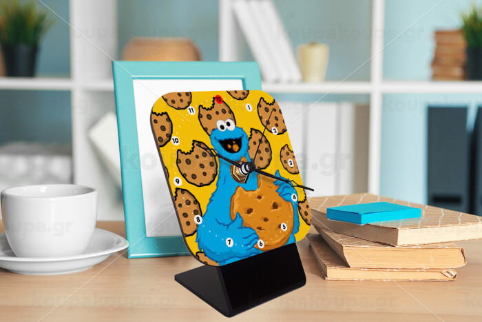Cookie Monster, Quartz Wooden table clock with hands (10cm)
