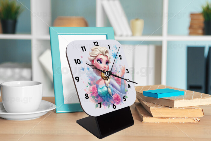 Elsa Princess, Quartz Wooden table clock with hands (10cm)