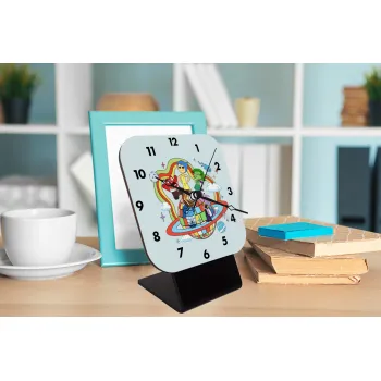 Quartz table clock made of wood. The set includes the clock and its base, the mechanism, and the installation instructions.