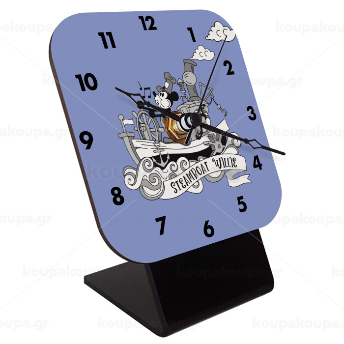 Mickey steamboat, Quartz Wooden table clock with hands (10cm)