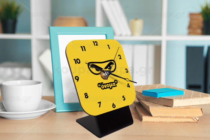 Ninja Eyes με όνομα, Quartz Wooden table clock with hands (10cm)