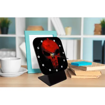 Red skull, Quartz Wooden table clock with hands (10cm)