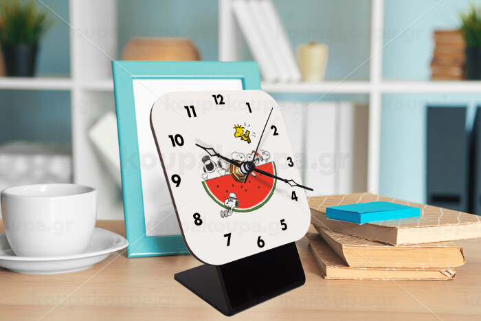 Snoopy summer, Quartz Wooden table clock with hands (10cm)