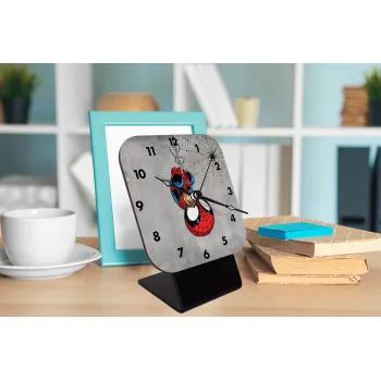 Spiderman upside down, Quartz Wooden table clock with hands (10cm)