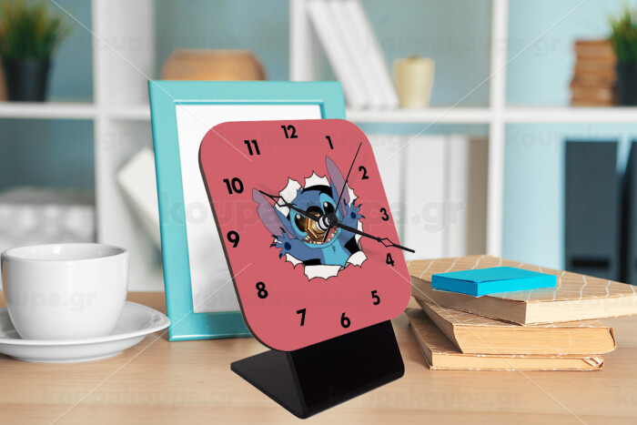 Stitch hello!!!, Quartz Wooden table clock with hands (10cm)