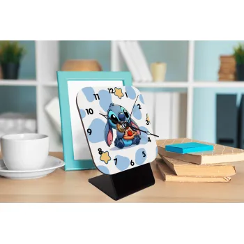 Stitch Pizza, Quartz Wooden table clock with hands (10cm)