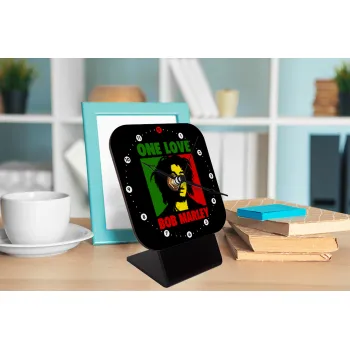 Bob marley, one love, Quartz Wooden table clock with hands (10cm)