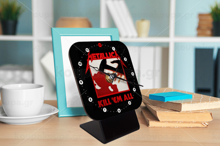 Metallica Kill' em all, Quartz Wooden table clock with hands (10cm)
