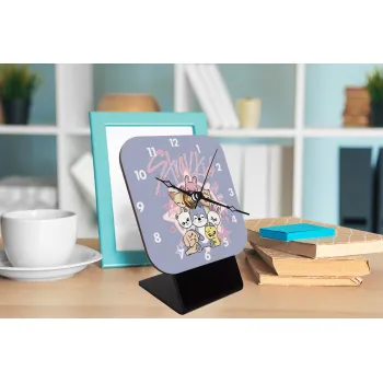 Stray Kids Pink, Quartz Wooden table clock with hands (10cm)