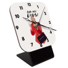 Quartz table clock made of wood. The set includes the clock and its base, the mechanism, and the installation instructions.