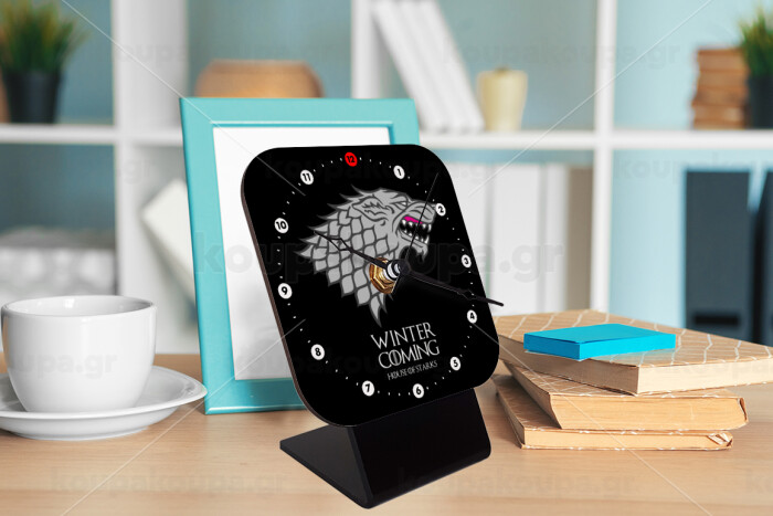 GOT House of Starks, winter coming, Quartz Wooden table clock with hands (10cm)