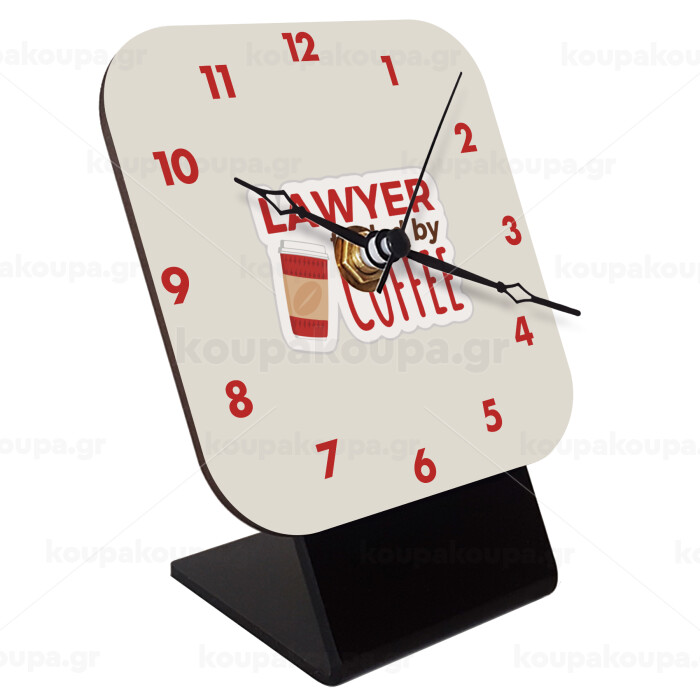 Lawyer fueled by coffee, Quartz Wooden table clock with hands (10cm)