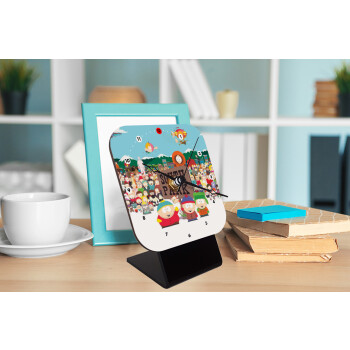 Quartz table clock made of wood. The set includes the clock and its base, the mechanism, and the installation instructions.