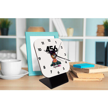 Squid game 456 Gi-Hun, Quartz Wooden table clock with hands (10cm)