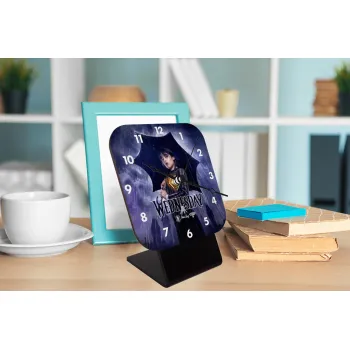 Quartz table clock made of wood. The set includes the clock and its base, the mechanism, and the installation instructions.