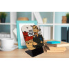 Quartz table clock made of wood. The set includes the clock and its base, the mechanism, and the installation instructions.