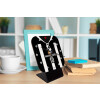Quartz table clock made of wood. The set includes the clock and its base, the mechanism, and the installation instructions.