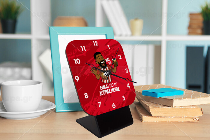 Ροντινέι, "ΠΟΛΥ ΚΟΥΡΑΣΜΕΝΟΣ", Quartz Wooden table clock with hands (10cm)
