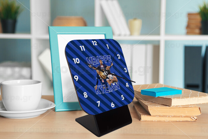 Kylian Mbappé, Quartz Wooden table clock with hands (10cm)