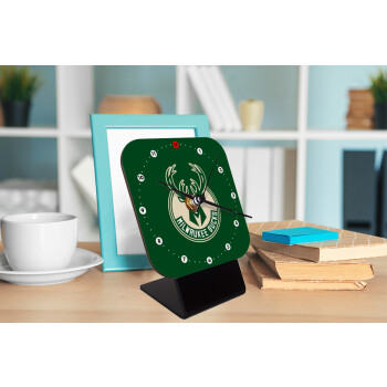 Milwaukee bucks, Quartz Wooden table clock with hands (10cm)