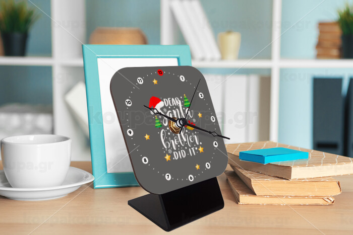 Dear santa my Brother did it, Quartz Wooden table clock with hands (10cm)