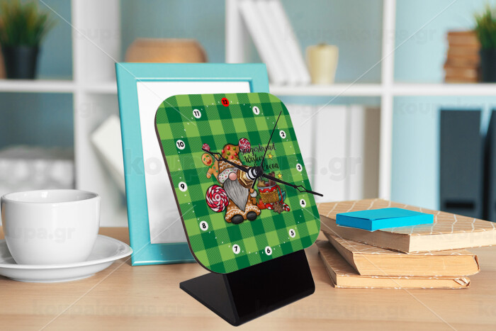 Gingerbread Wishes, Quartz Wooden table clock with hands (10cm)
