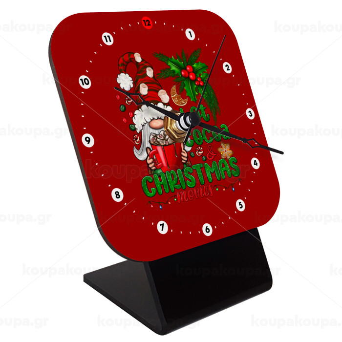 Hot cocoa and Christmas movies, Quartz Wooden table clock with hands (10cm)